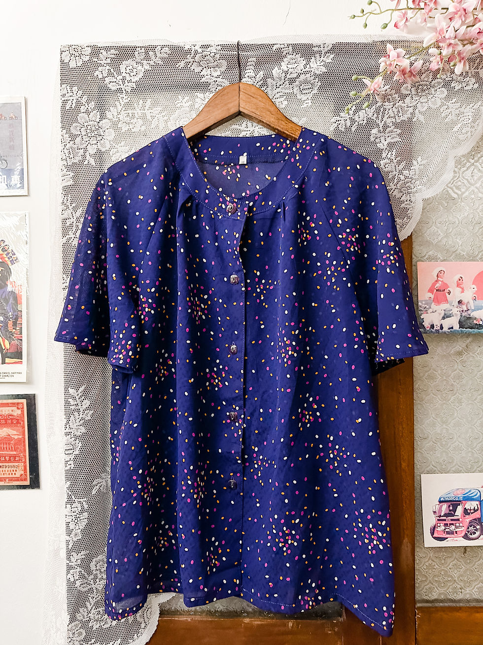 深藍小圓點短袖上衣